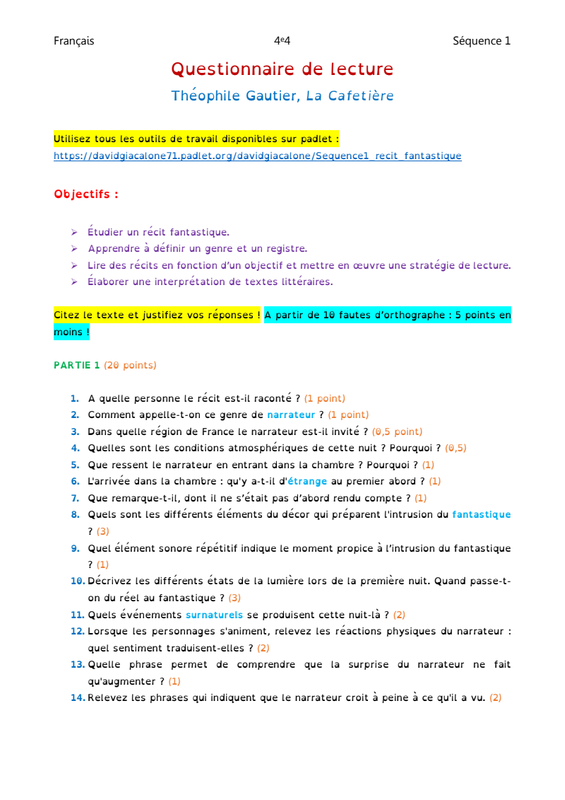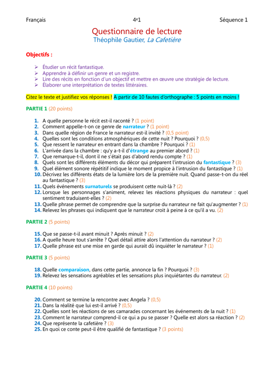 Questionnaire Lecture Cafetiere