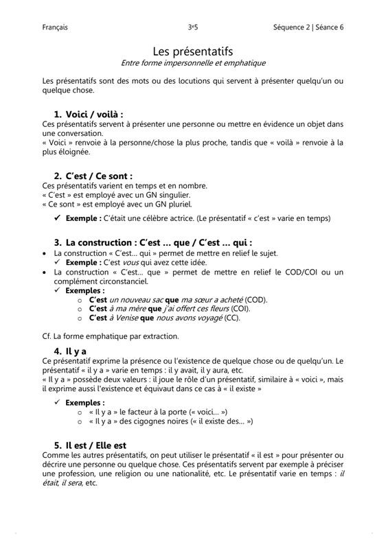 Les présentatifs et la mise en relief (pour la mise en relief, pensez notamment à la forme emphatique | Cf. la 4e partie de cette fiche : a) Bouleverser l'ordre des mots, ce en quoi consiste précisément le procédé de l'extraction).